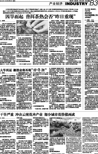干旱严重 冲击云南花卉产业 部分城市花价涨两成...