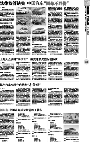 法律监管缺失 中国汽车“同命不同价”...