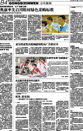 奥康率先启用鞋材绿色采购标准