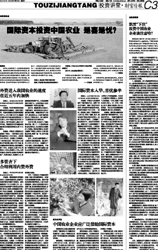 国际资本投资中国农业 是喜是忧?...