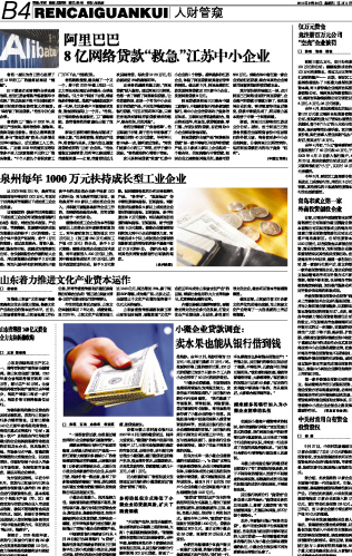阿里巴巴8亿网络贷款“救急”江苏中小企业...