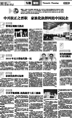 中兴侯正之晋职 家族化抉择纠结中国民企...