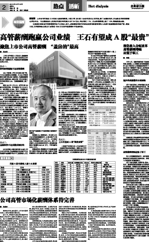 高管薪酬跑赢公司业绩 王石有望成A股“最贵”...