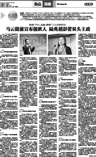 马云提前宣布接班人 陆兆禧彭蕾双头主政...