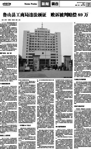 鲁山县工商局违法颁证 败诉被判赔偿89万...