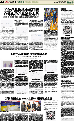 五金产品价格小幅回暖户外防护产品销量走俏...