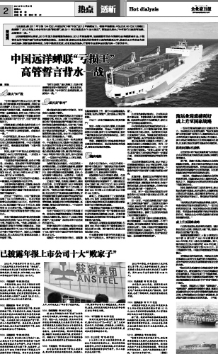中国远洋蝉联“亏损王”高管誓言背水一战...