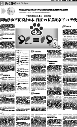 圈地移动互联不惜血本 百度19亿美元拿下91无线...