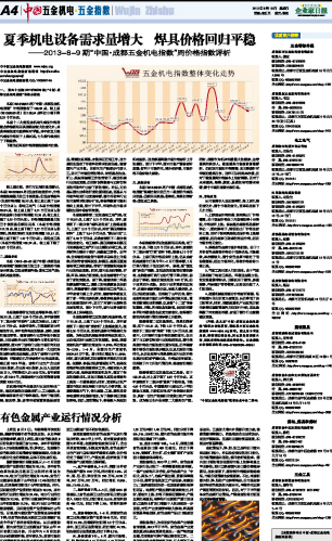 夏季机电设备需求量增大 焊具价格回归平稳...
