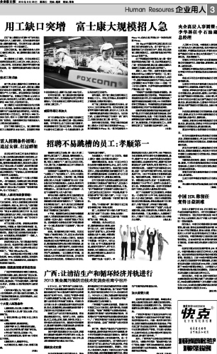 用工缺口突增 富士康大规模招人急...