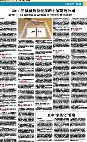 2014年减员数量最多的十家制药公司...