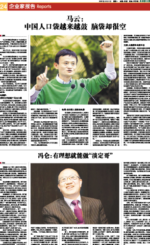 马云:中国人口袋越来越鼓 脑袋却很空...