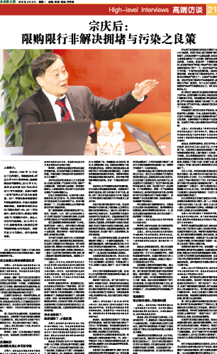宗庆后:限购限行非解决拥堵与污染之良策...