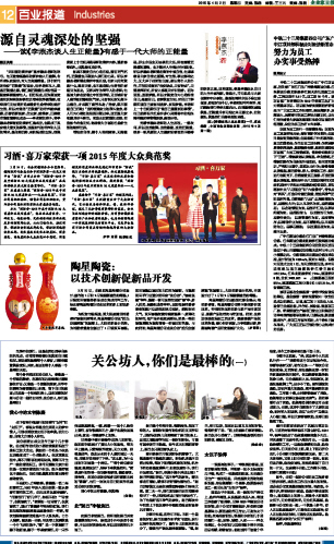 习酒·喜万家荣获一项2015年度大众典范奖...