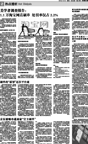 美学者调查报告:1.1万淘宝网店刷单 处罚率仅占...