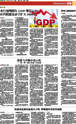 央行预判明年GDP增长6.8% 社科院建议赤字扩大50...