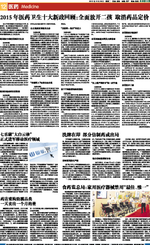 2015年医药卫生十大新政回顾:全面放开二孩 取...