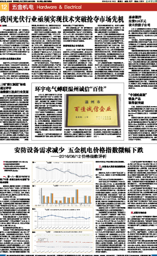 安防设备需求减少 五金机电价格指数微幅下跌...