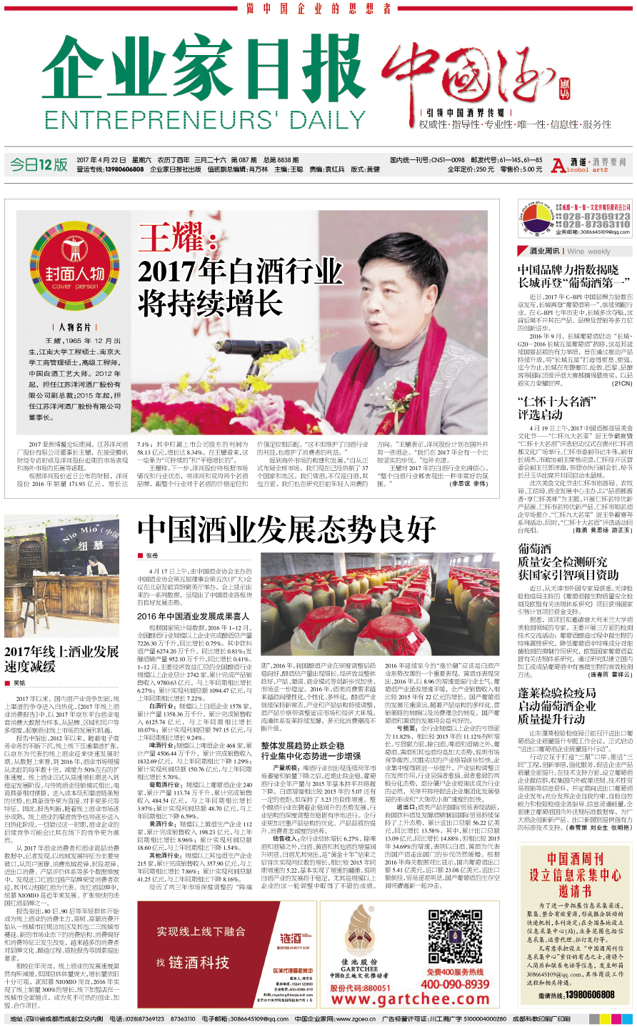 国内统一刊号:CN51—0098 中国•企业家日报
