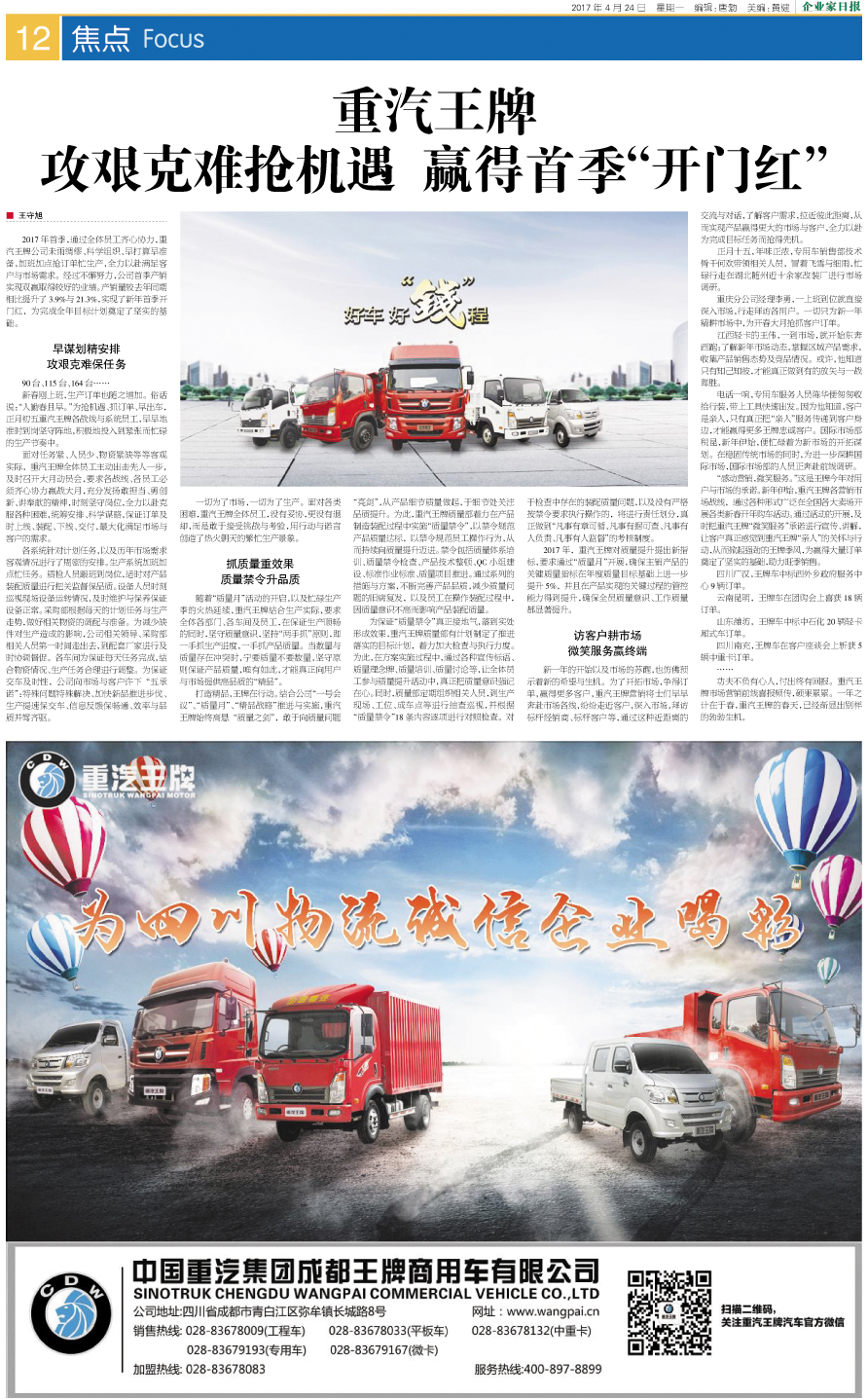 重汽王牌 攻艰克难抢机遇 赢得首季“开门红”...