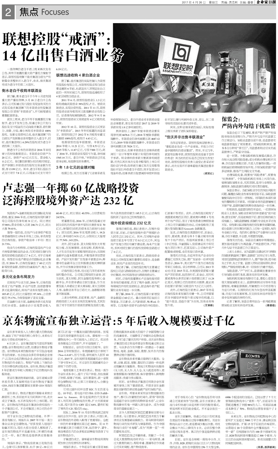 联想控股“戒酒”: 14亿出售白酒业务...