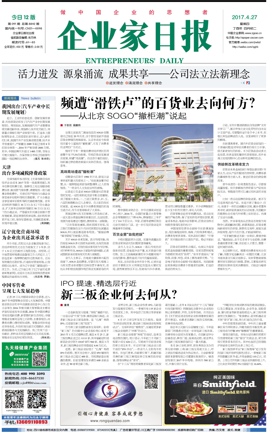 国内统一刊号:CN51—0098 中国•企业家日报