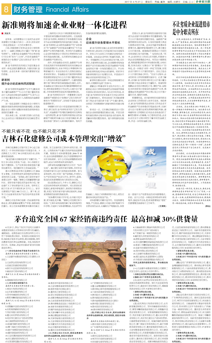 茅台追究全国67家经销商违约责任 最高扣减30%供...