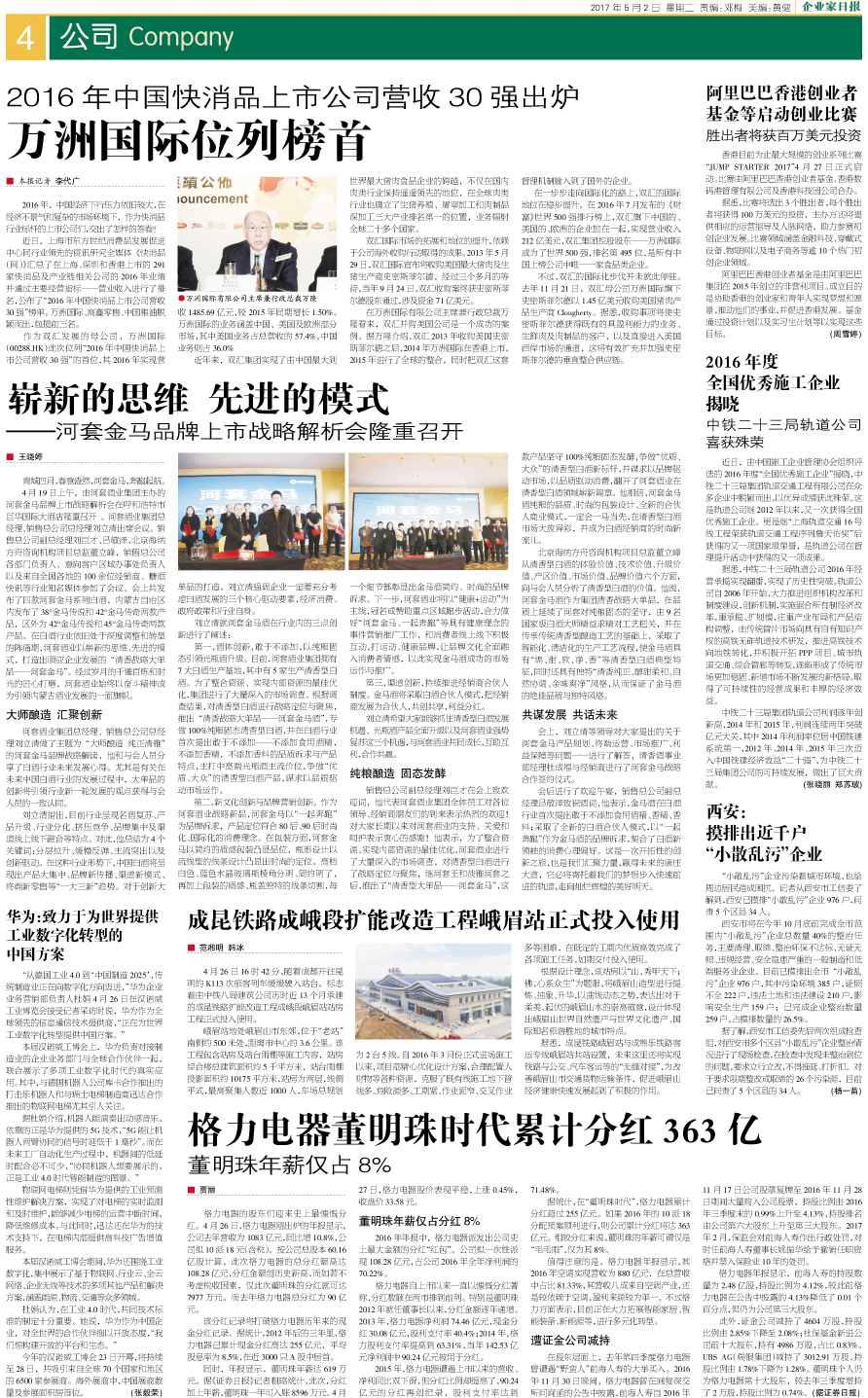 2016年中国快消品上市公司营收30强出炉 万洲国...