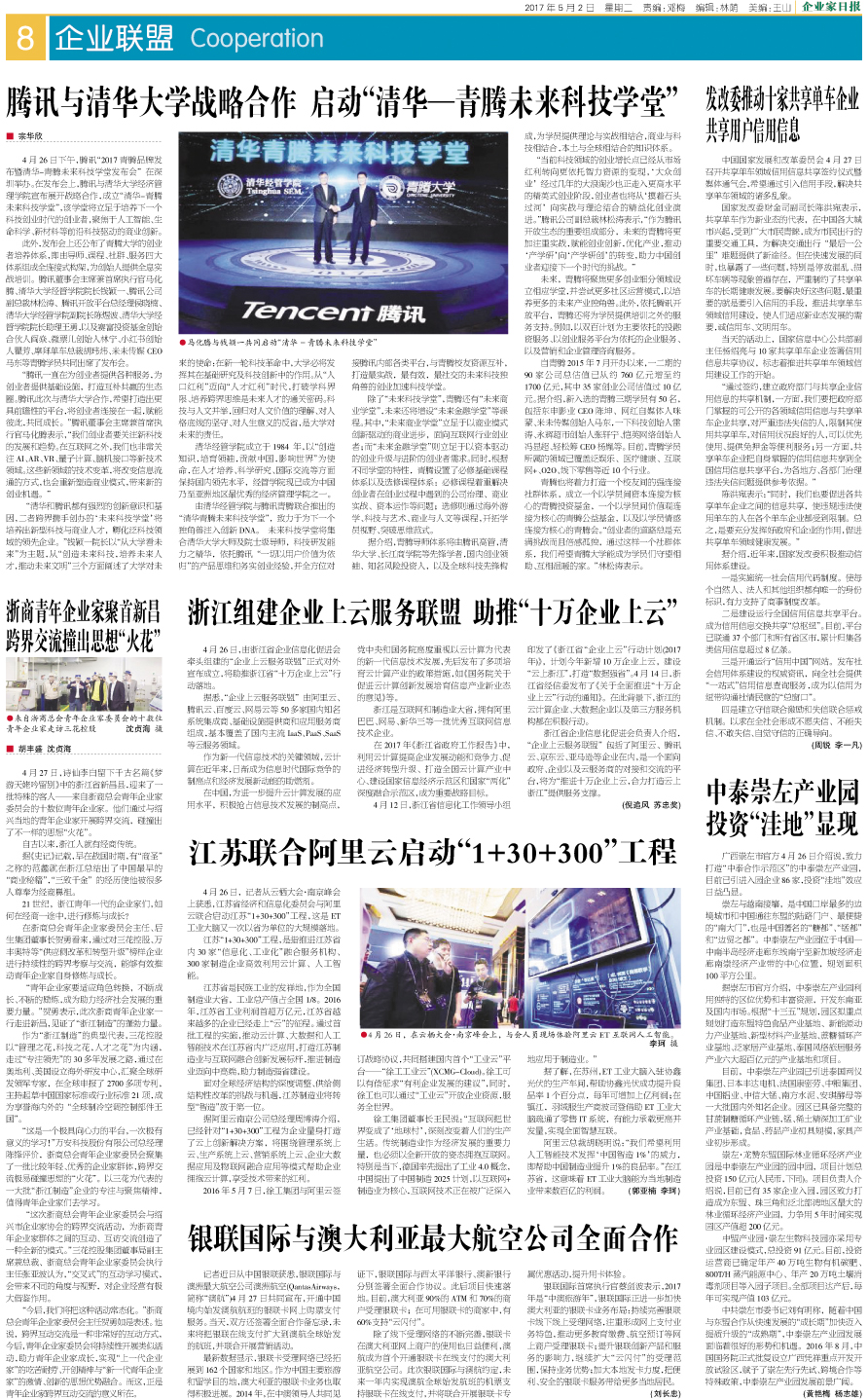 江苏联合阿里云启动“1+30+300”工程...