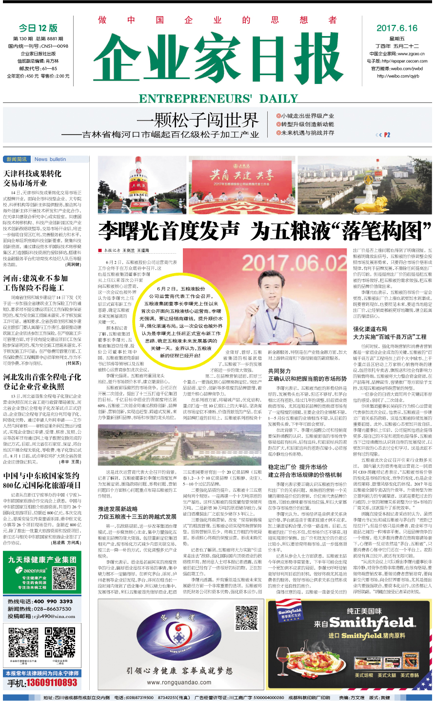 国内统一刊号:CN51—0098 中国•企业家日报