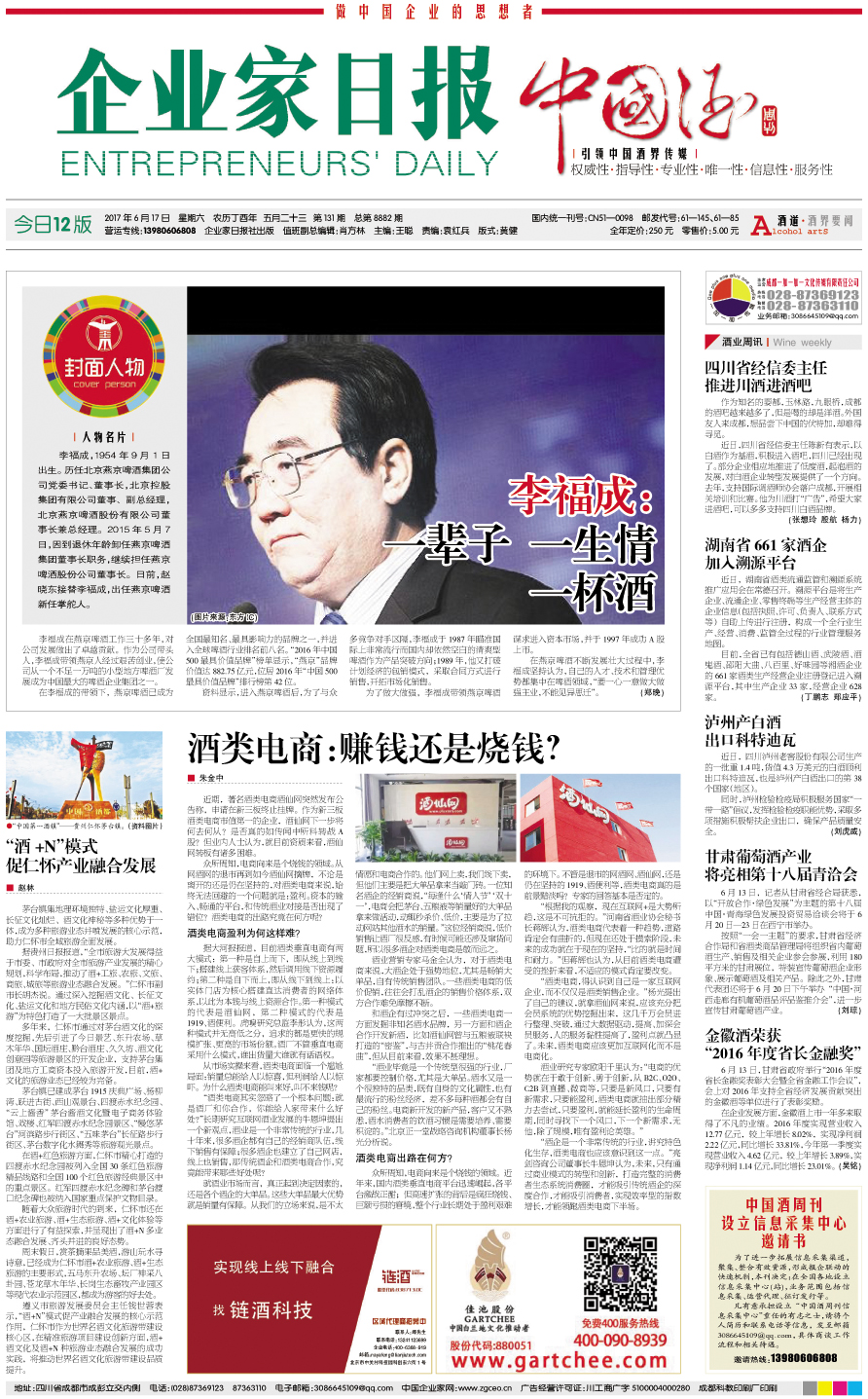 国内统一刊号:CN51—0098 中国•企业家日报