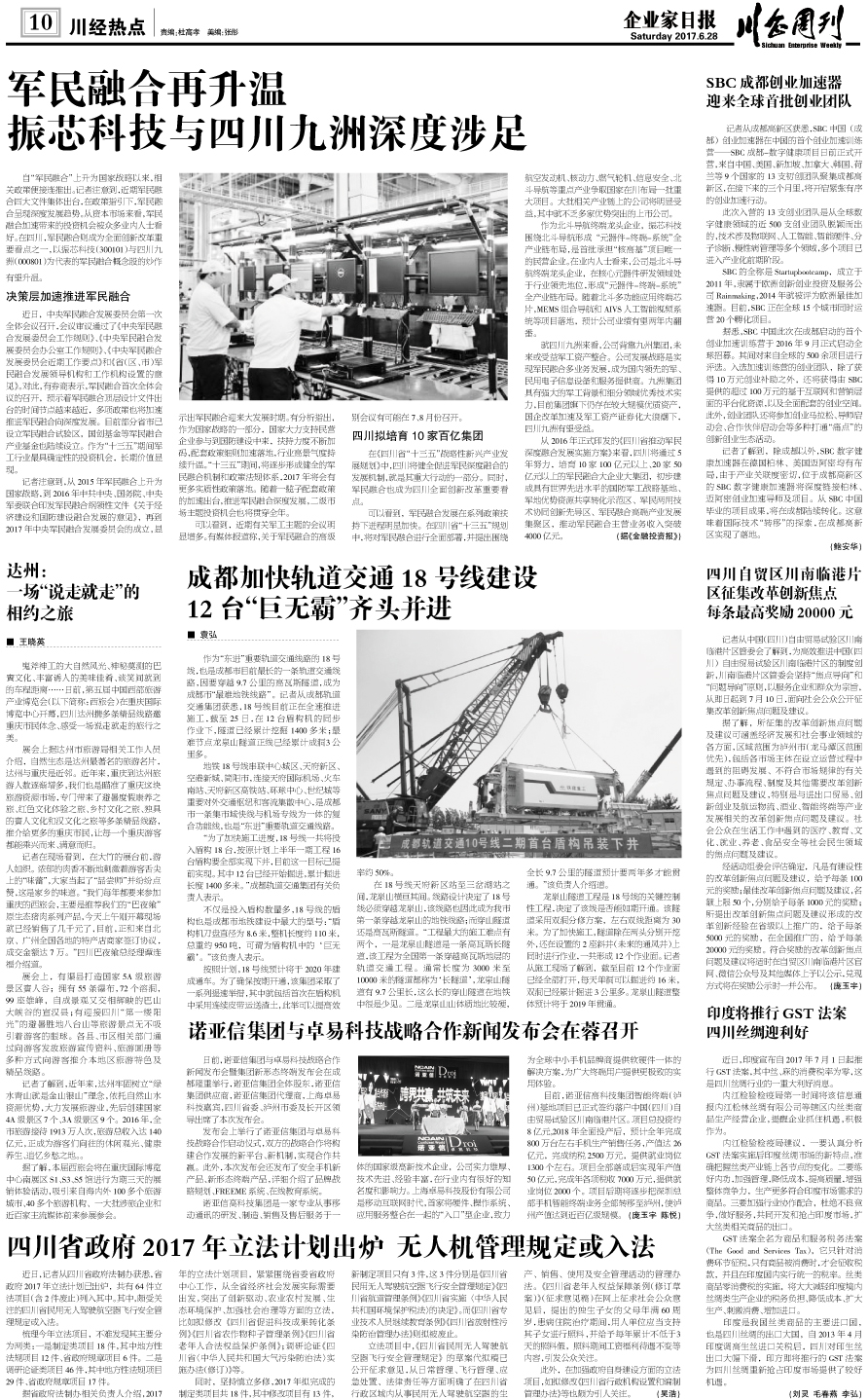 国内统一刊号:CN51—0098 中国•企业家日报