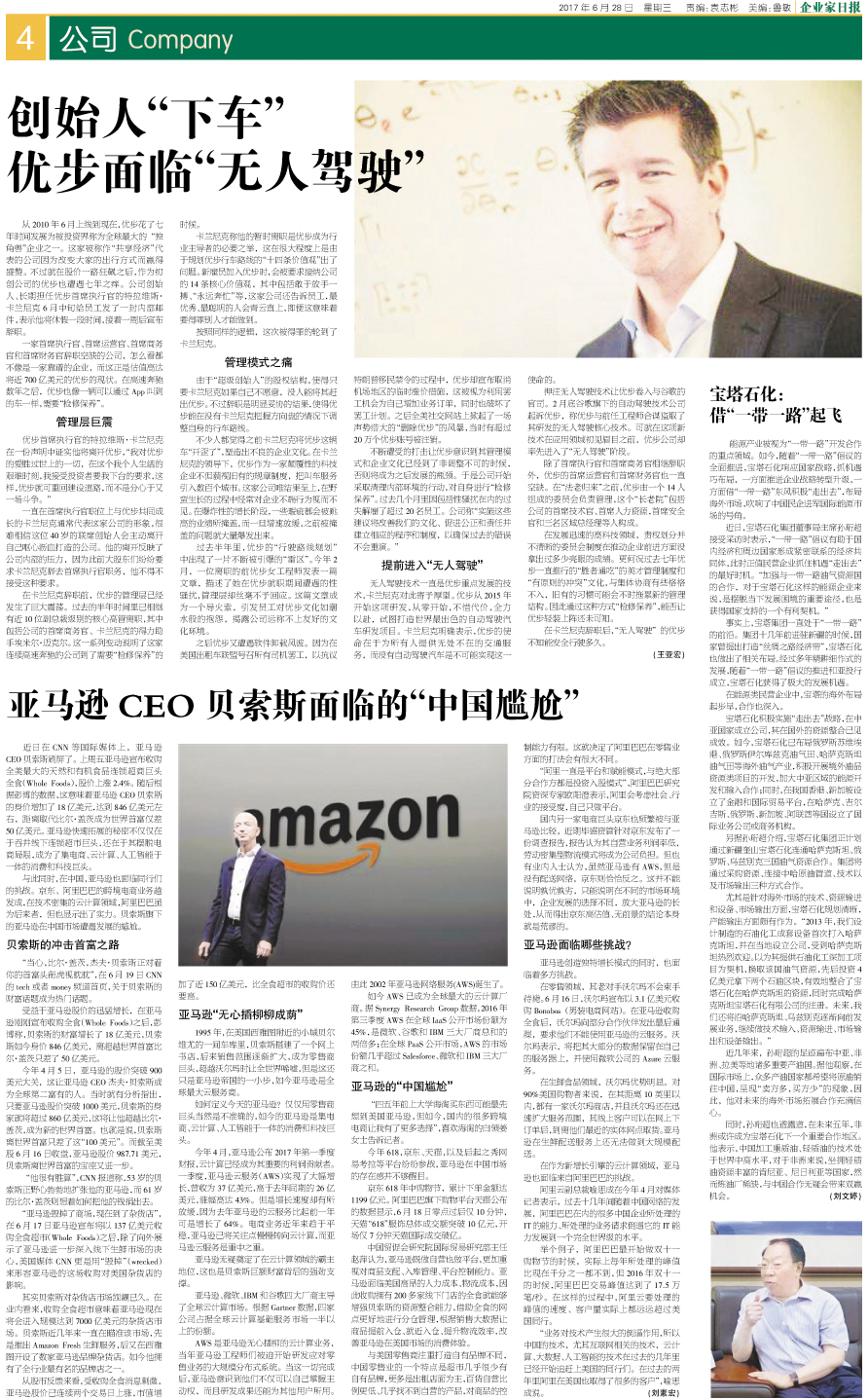 创始人“下车” 优步面临“无人驾驶”...