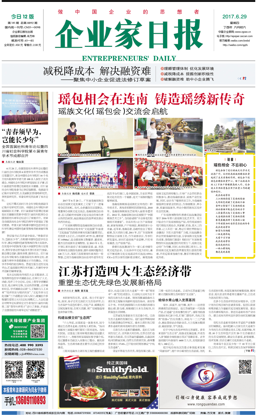 国内统一刊号:CN51—0098 中国•企业家日报