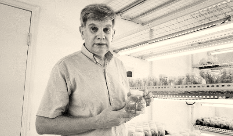 ●帕奈博士在实验室,手捧的塑料罐里装着蔓越莓克隆苗。