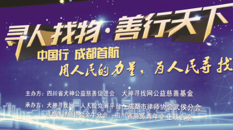 盛夏六月,由四川省犬神公益慈善促进会、《犬神寻找网》公益慈善基金主办;犬神寻找网、人人投众筹平台、成都市律师协会武侯分会、金牛分会承办的大型公益慈善活动“寻人找物·善行天下——中国行”活动,2017年6月18日在成都首座万豪酒店盛大举行。本次活动得到了国务院国资委、全国人大财经委、四川大学法学院、四川邛崃法院、成都市律协、以及五十余家全国商协会及社会各界人士的支持与参与,共同探讨寻人找物、法院执行难、社会诚信缺失、创新债务处置等社会热点话题。