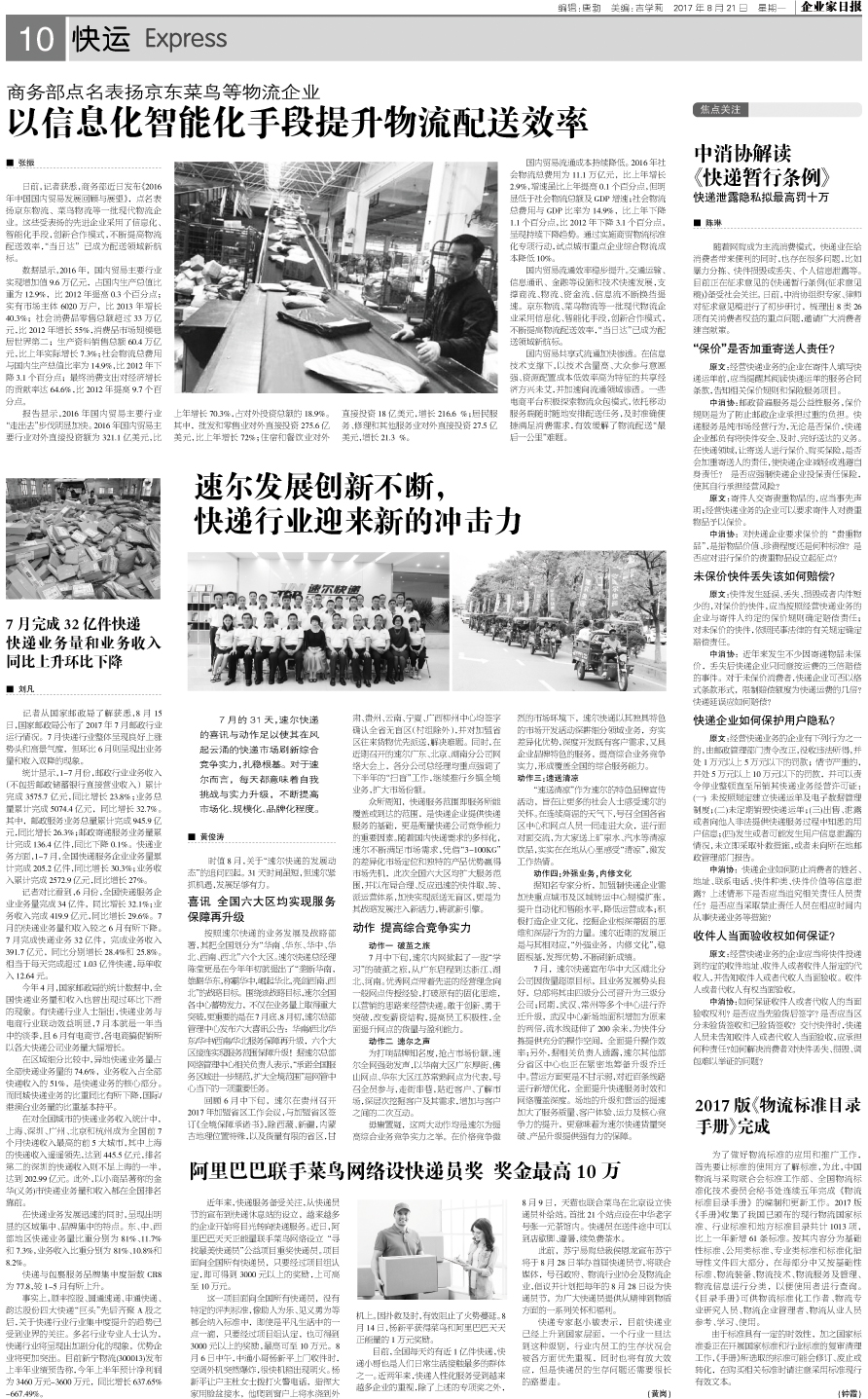 商务部点名表扬京东菜鸟等物流企业 以信息化智...