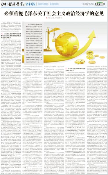 必须重视毛泽东关于社会主义政治经济学的意见...