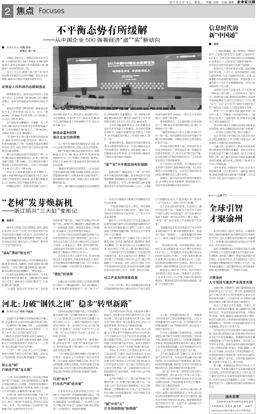 不平衡态势有所缓解 ——从中国企业500强看经济...