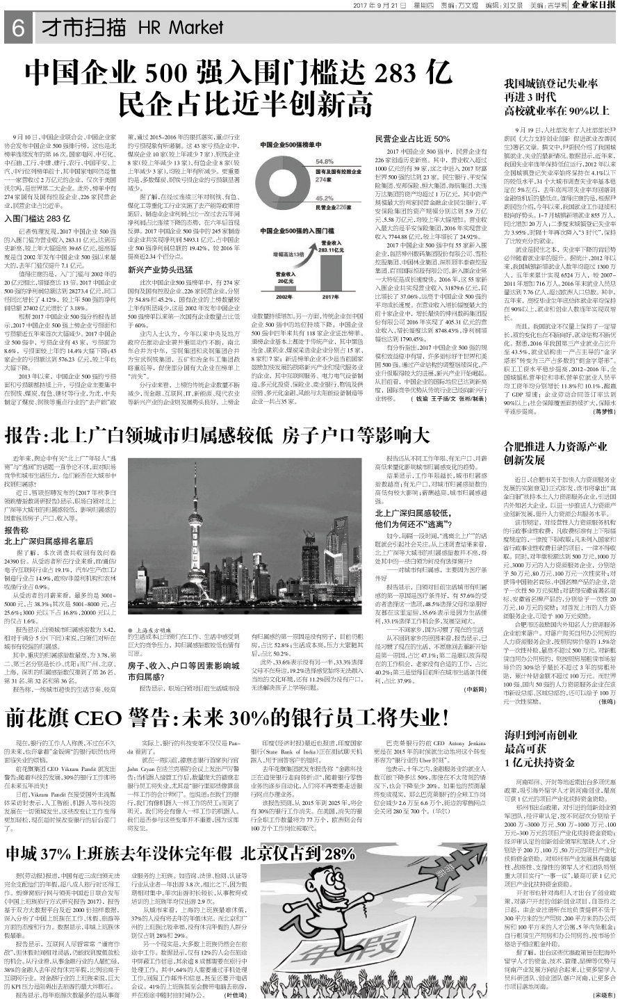 中国企业500强入围门槛达283亿 民企占比近半创...