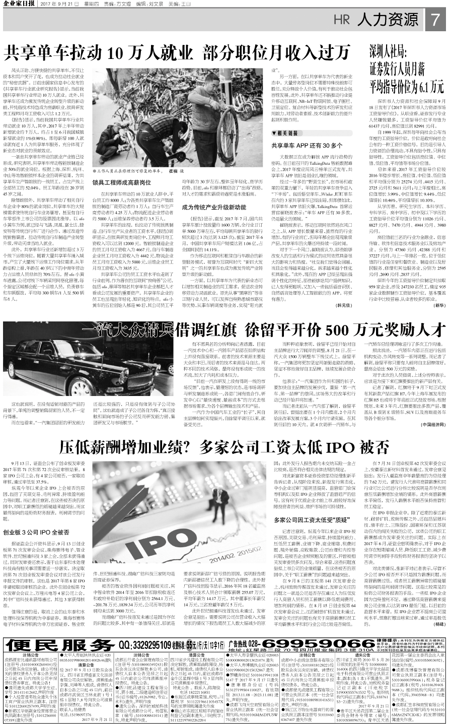 深圳人社局: 证券发行人员月薪 平均指导价位为...