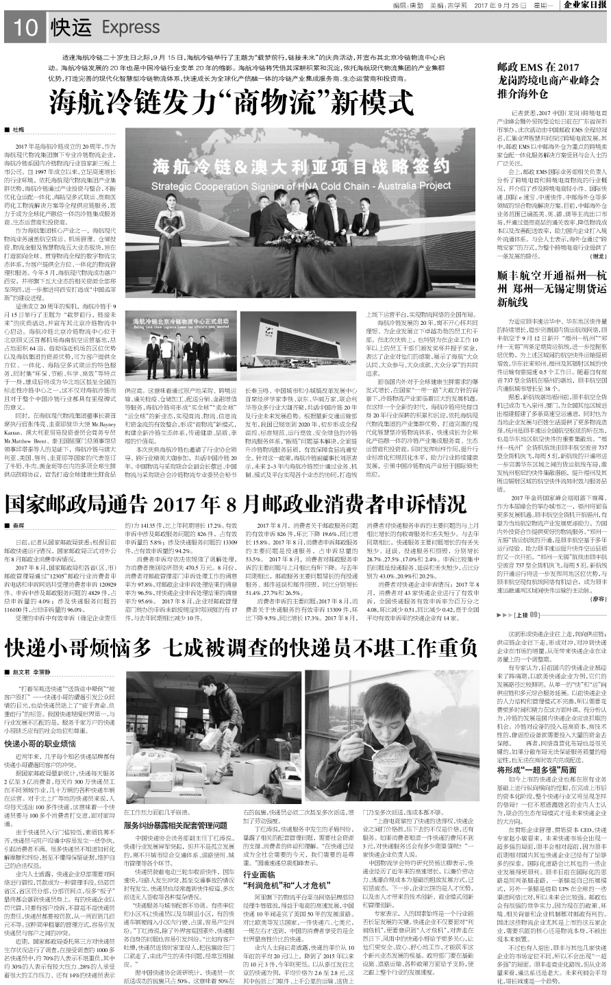 国家邮政局通告2017年8月邮政业消费者申诉情况...