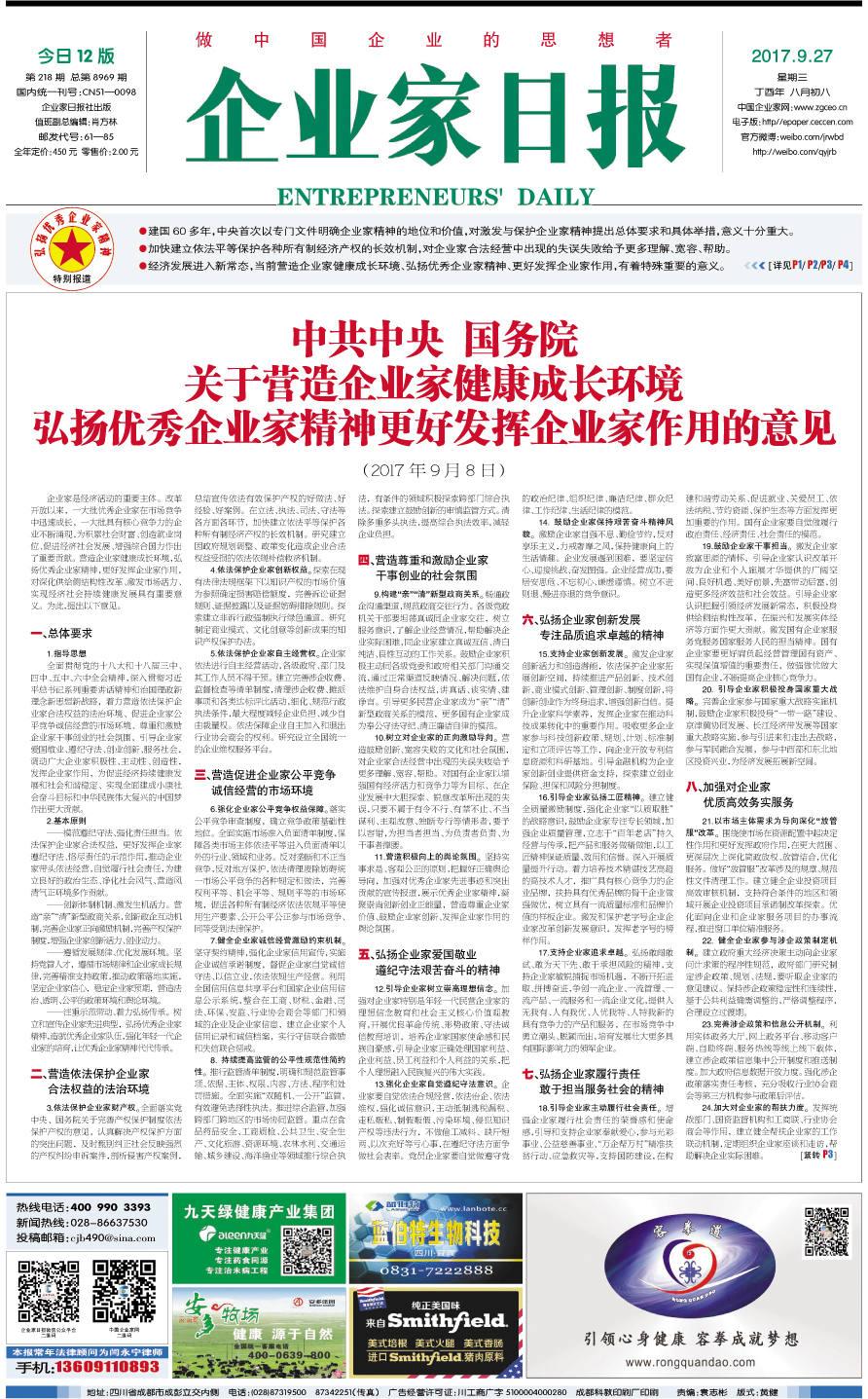中共中央 国务院 关于营造企业家健康成长环境 ...