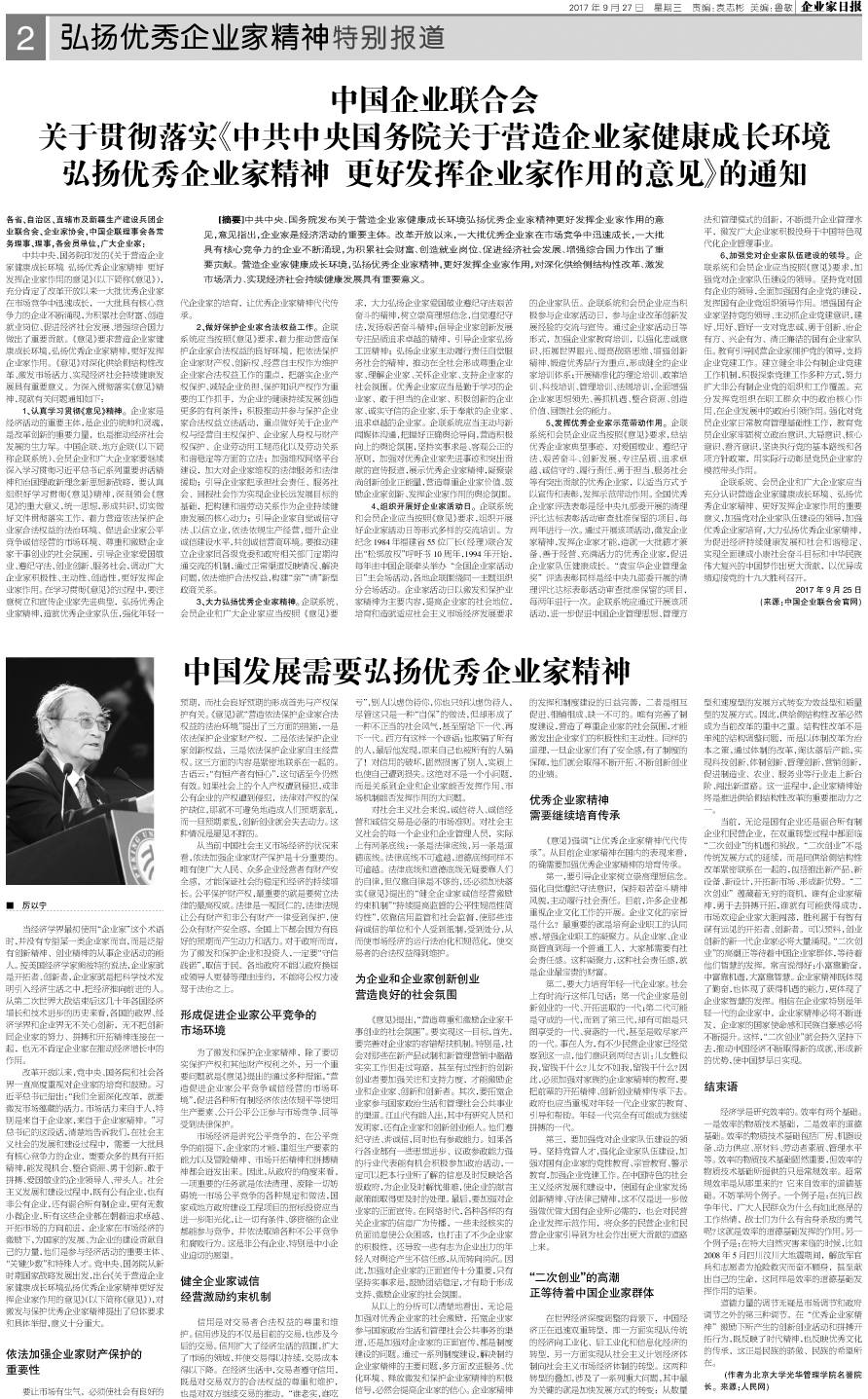 中国企业联合会 关于贯彻落实《中共中央国务院...