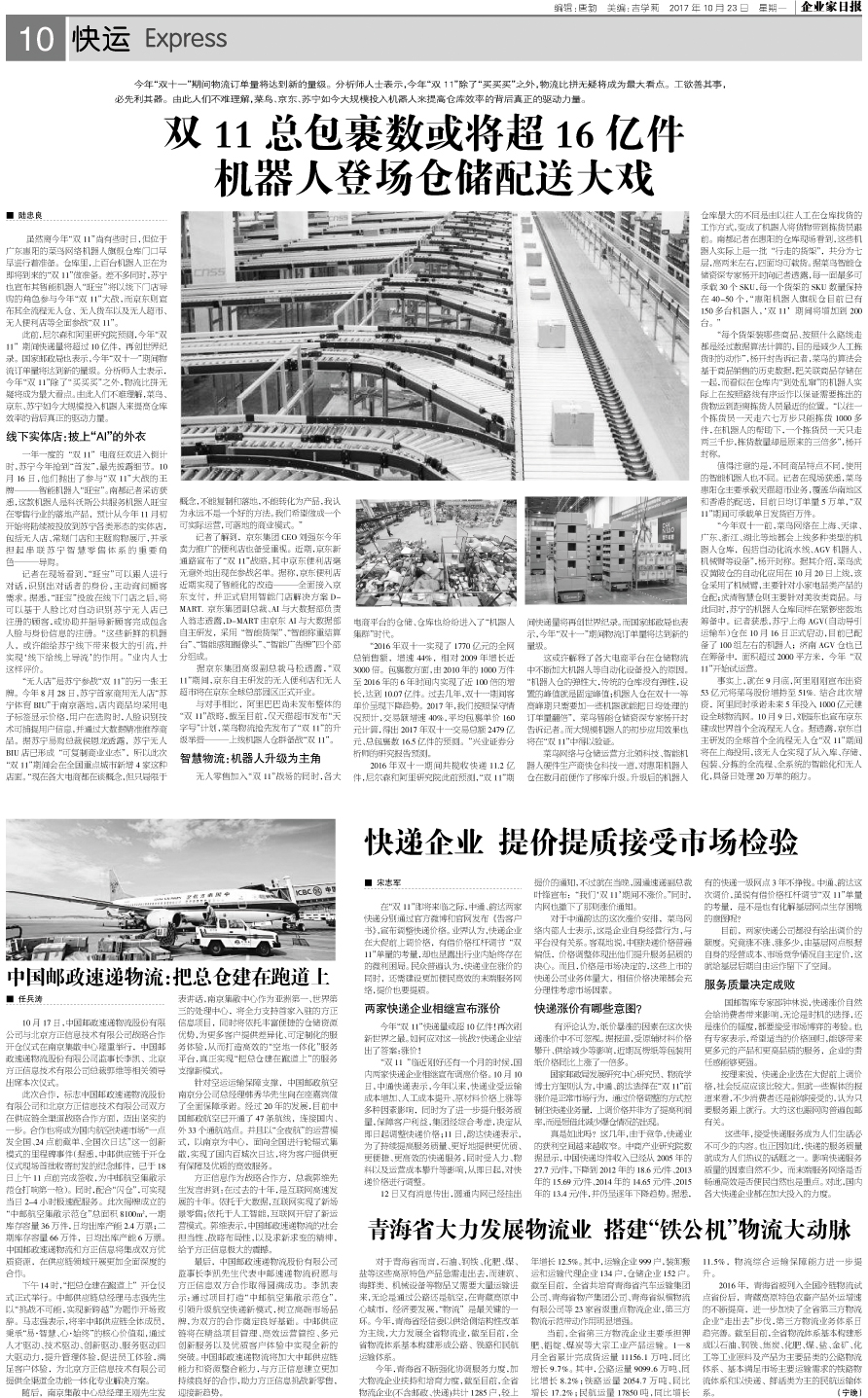 双11总包裹数或将超16亿件 机器人登场仓储配送...