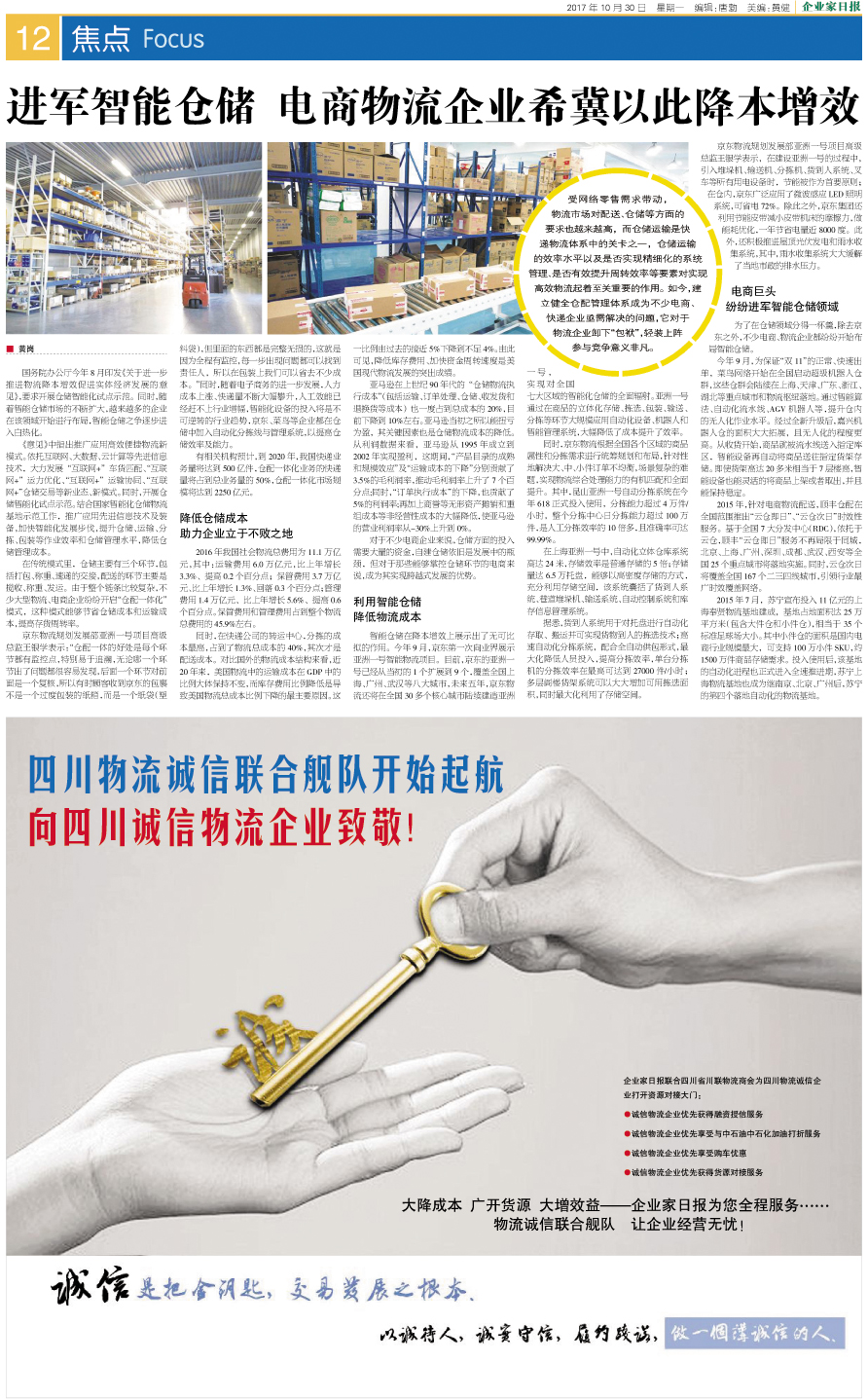 进军智能仓储 电商物流企业希冀以此降本增效...