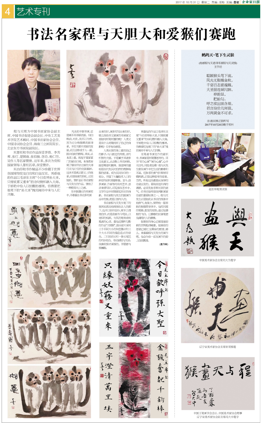 书法名家程与天胆大和爱猴们赛跑...