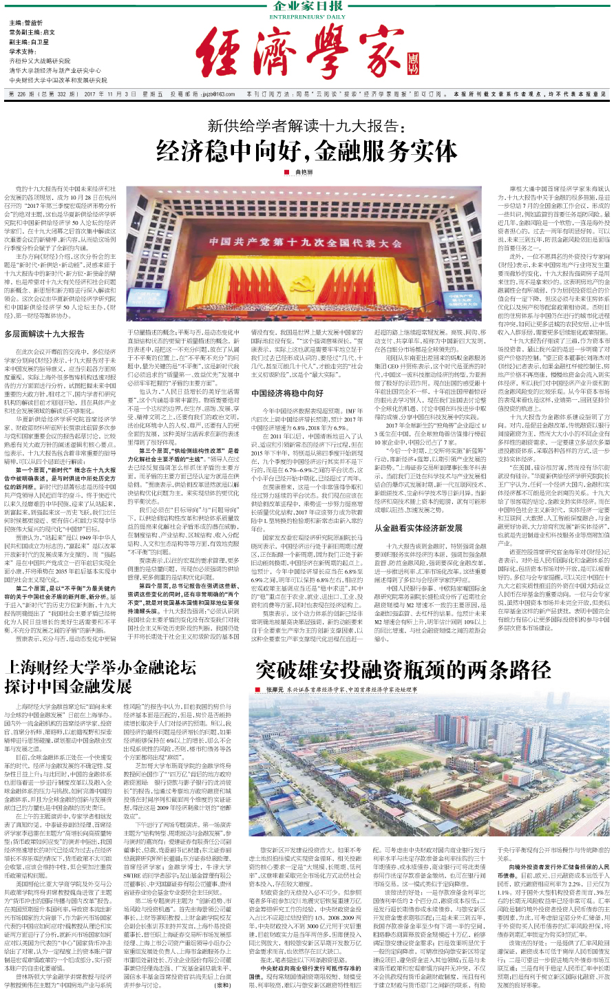 新供给学者解读十九大报告: 经济稳中向好,金...