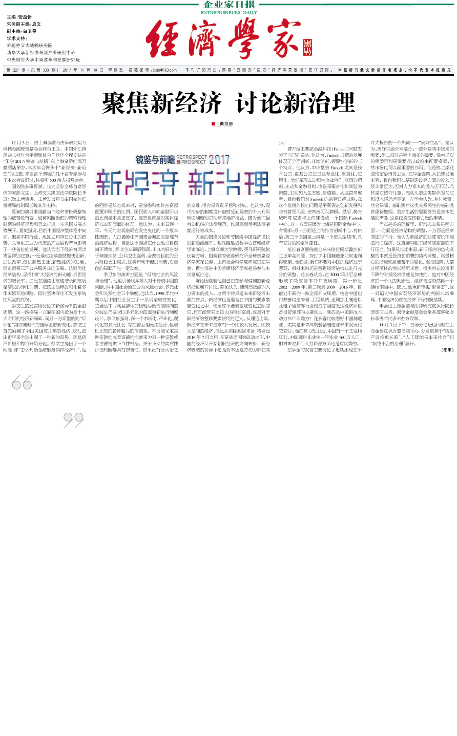 聚焦新经济 讨论新治理