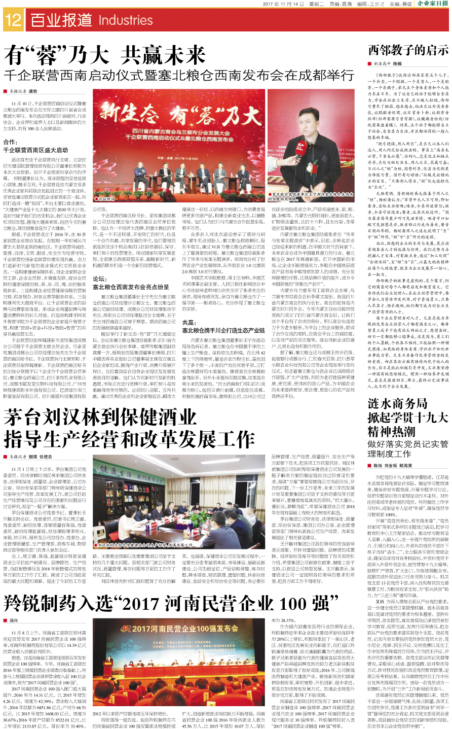茅台刘汉林到保健酒业 指导生产经营和改革发展...